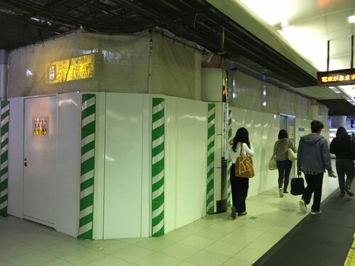 空港第2ビル駅でエレベーターとホームドア設置工事が始まってます